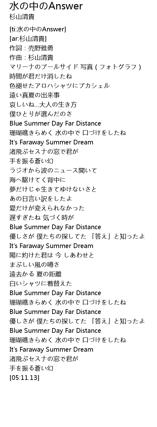 | [04:10.33] | Blue Summer Day Far Distance |
