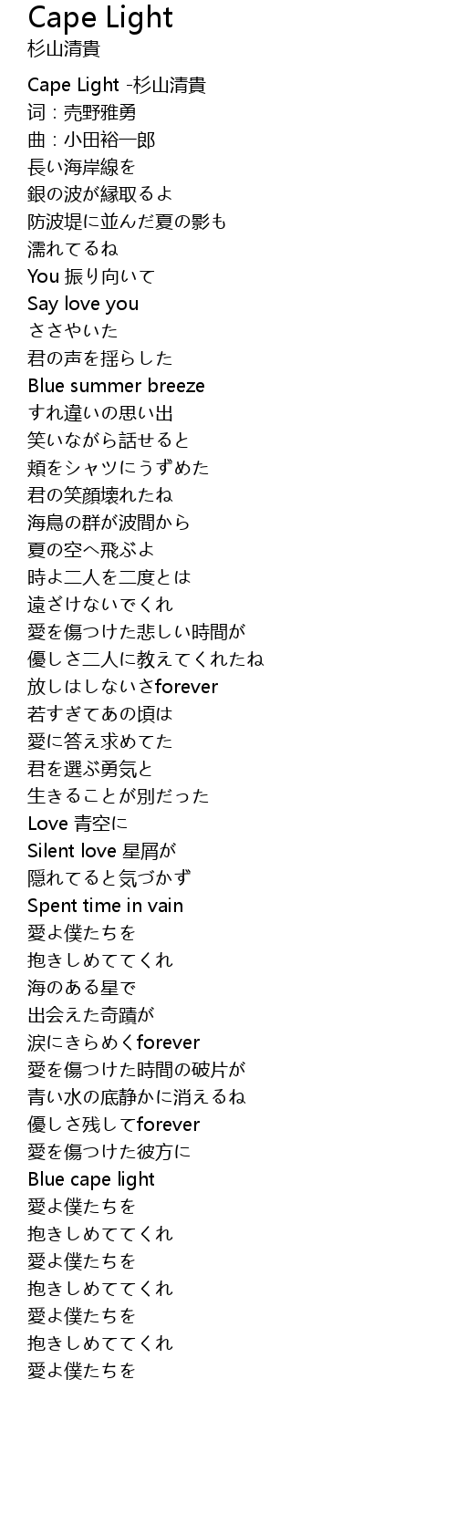 | [00:00.00] | Cape Light -杉山清貴 |