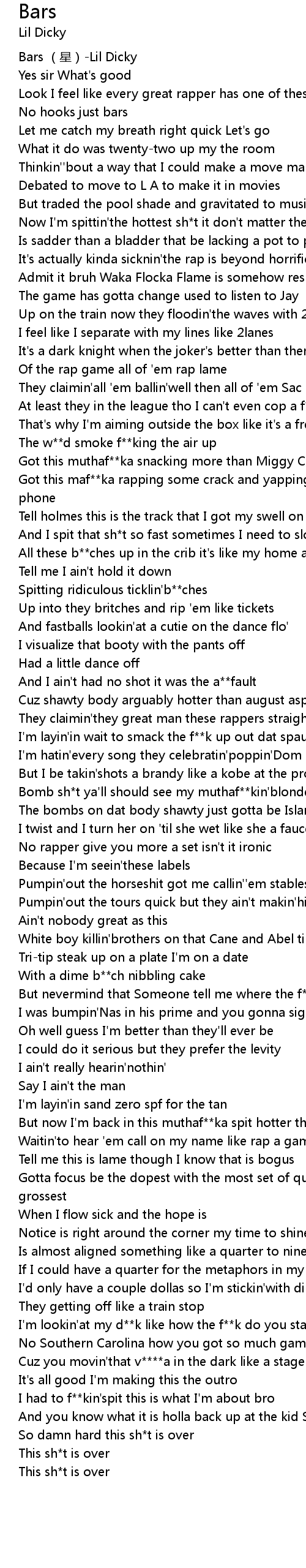 | [00:00.00] | Bars (星)-Lil Dicky |