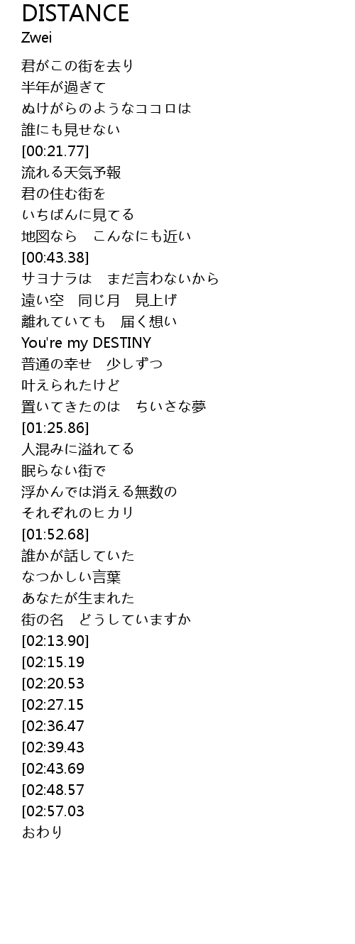 | [03:37.88][02:36.47] | You're my DESTINY |
