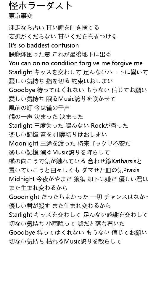 | 切ない気持ち 枯れるMusic誇りを散らして |