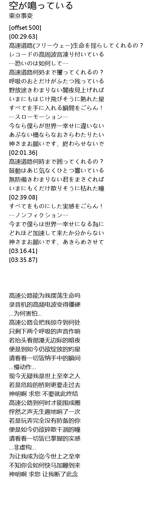 | [02:07.50] | 高速道路何時まで囲ってくれるの? |