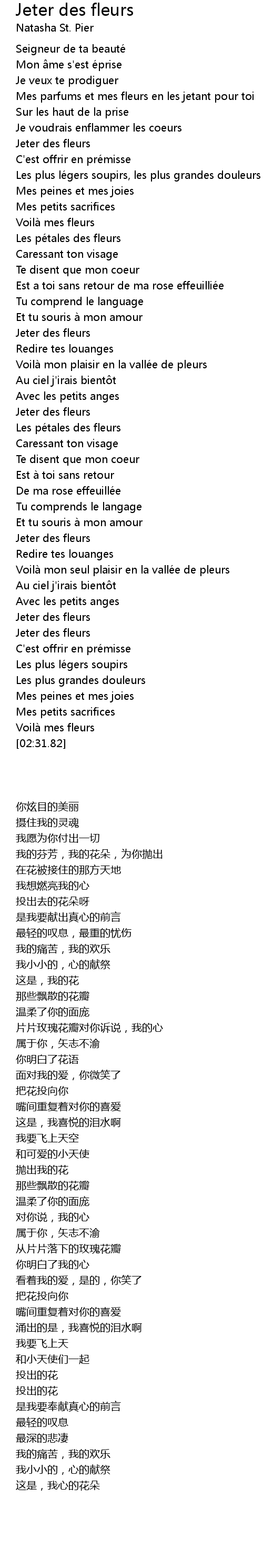 | [00:20.94] | Mes parfums et mes fleurs en les jetant pour toi |
