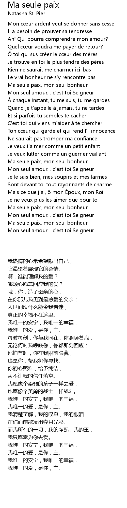 | Song | Ma seule paix |