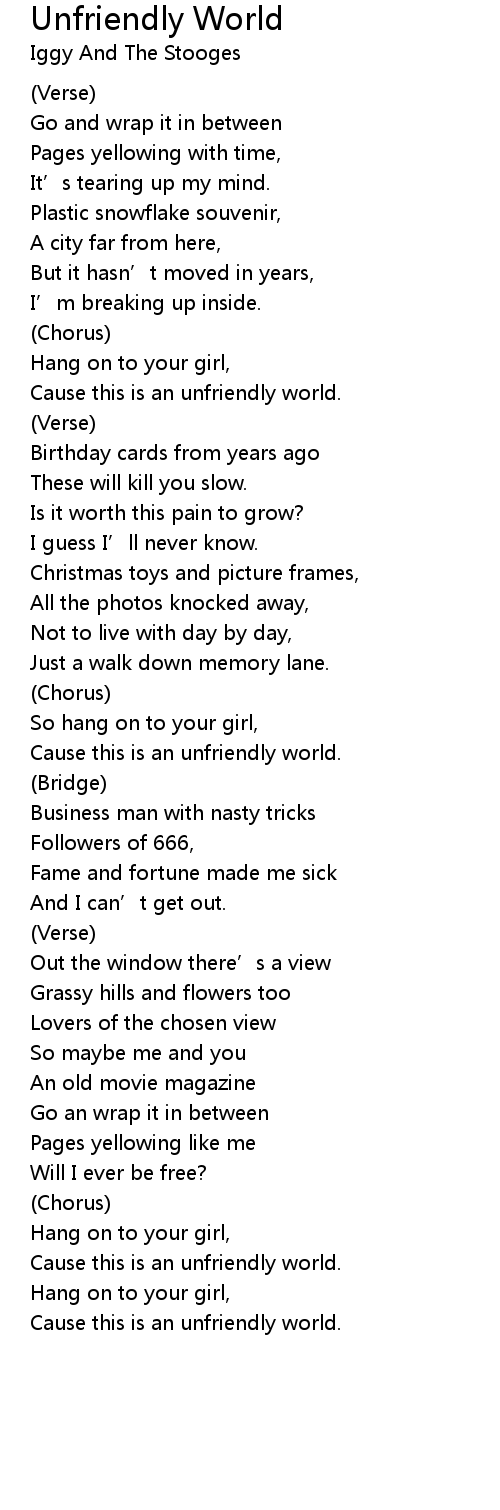 | Cause this is an unfriendly world. | |