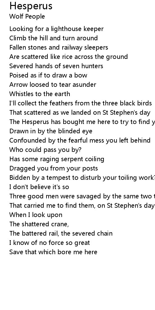 The Hesperus has bought me here to try to find you |