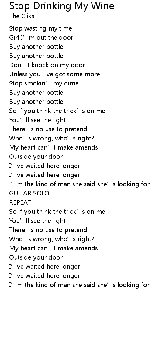 | Song | Stop Drinking My Wine |