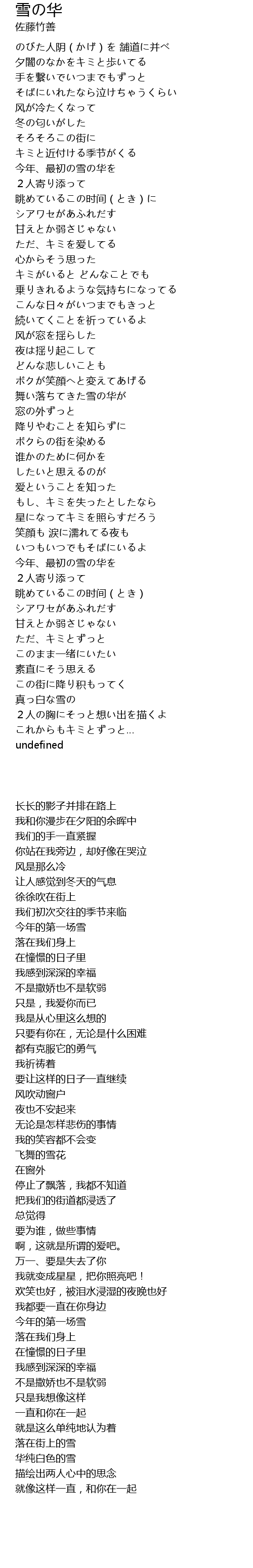 | Song | 雪の华 |
