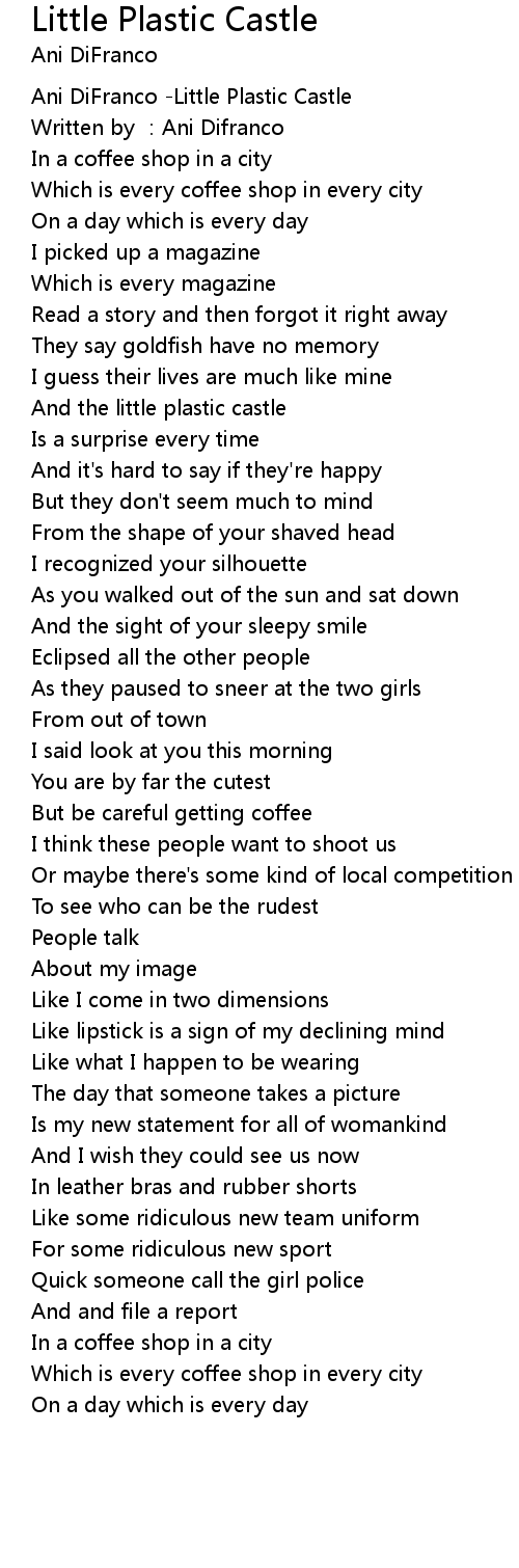 | [00:00.127] | Ani DiFranco Little Plastic Castle |