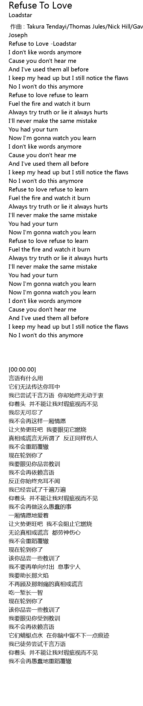 | [00:00.00] | Refuse to Love Loadstar |