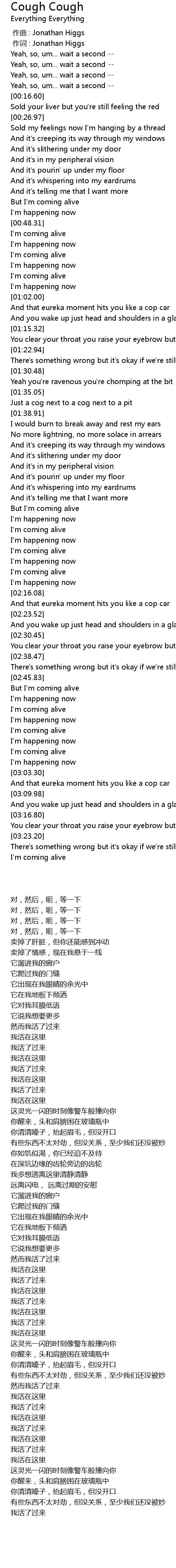 | [00:00.00] | zuò qǔ : Jonathan Higgs |