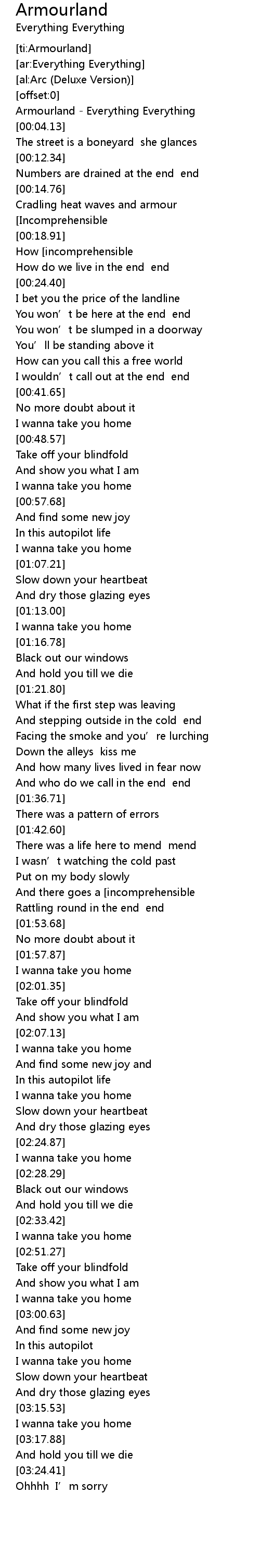 | [00:01.00] | Armourland Everything Everything |