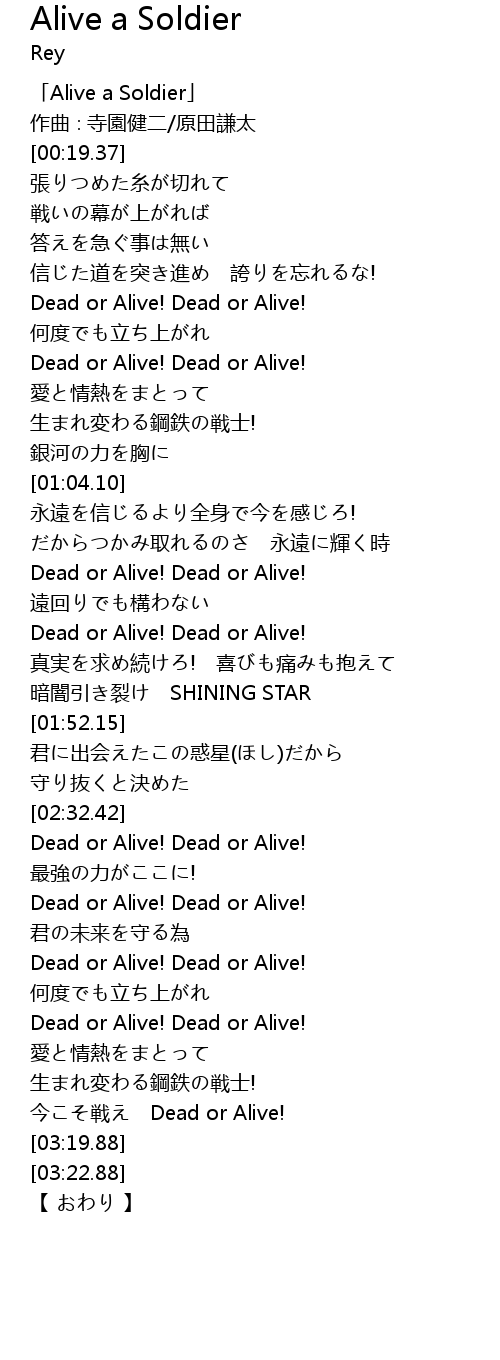| [00:01.37] | Alive a Soldier |