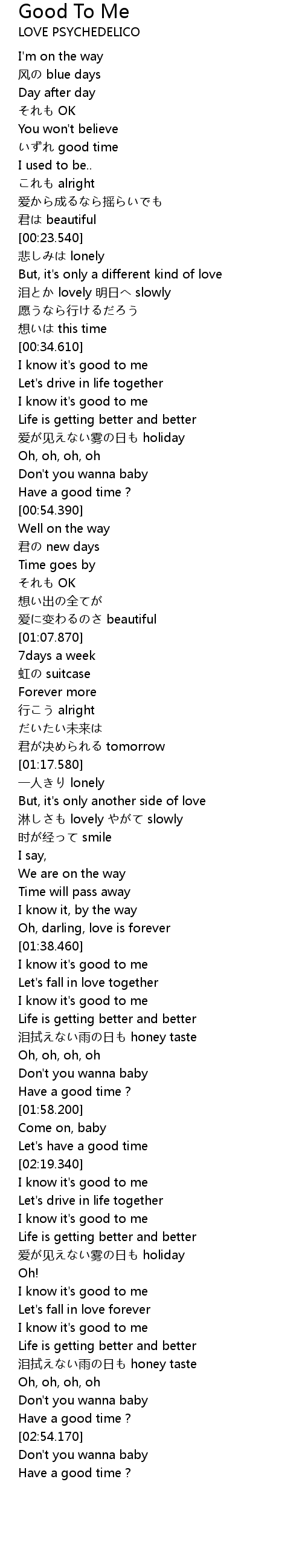 | [02:20.130] | I know it's good to me |
