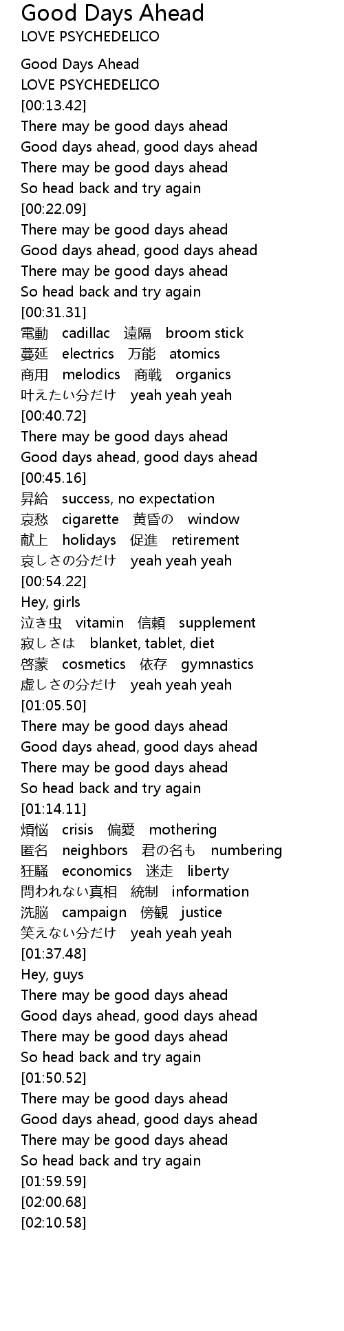 | [00:43.05] | Good days ahead, good days ahead |