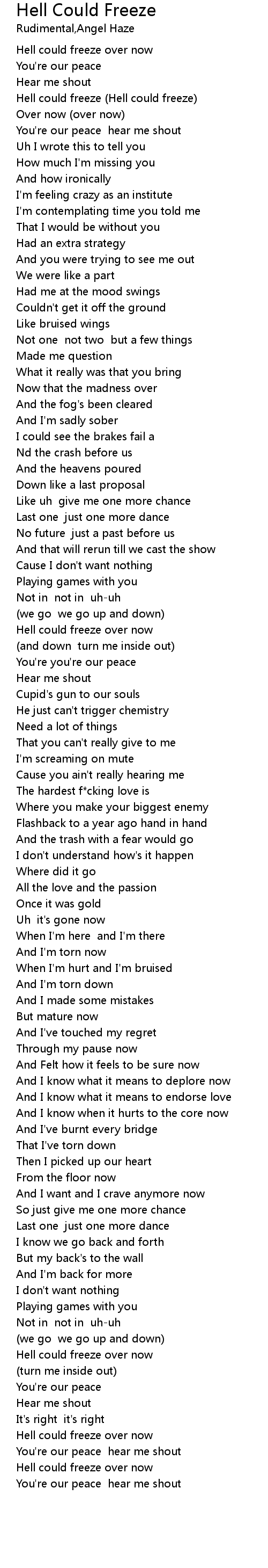 You're our peace hear me shout |