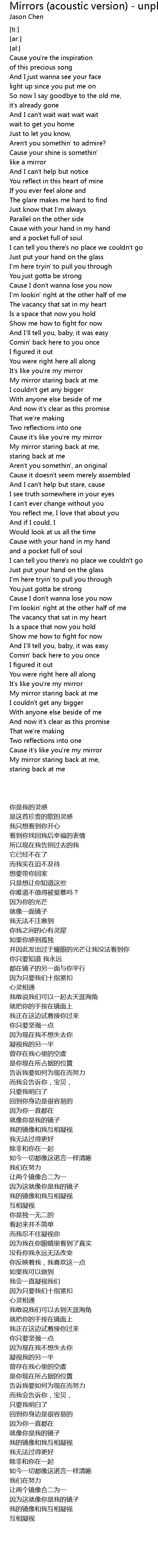 Cause it's like you're my mirror |