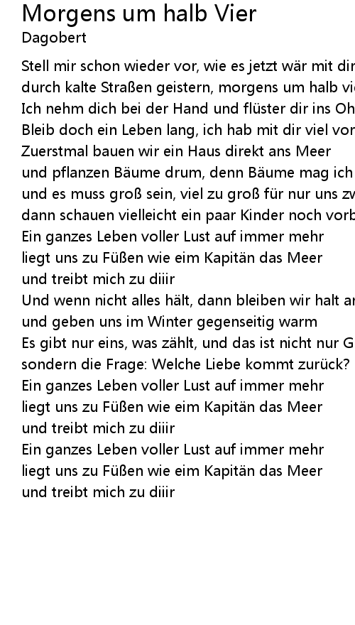 | Song | Morgens um halb Vier |