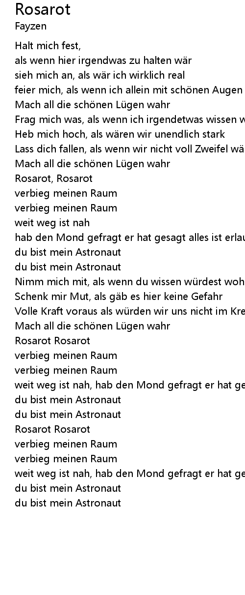 | weit weg ist nah, hab den Mond gefragt er hat gesagt alles ist erlaubt | |