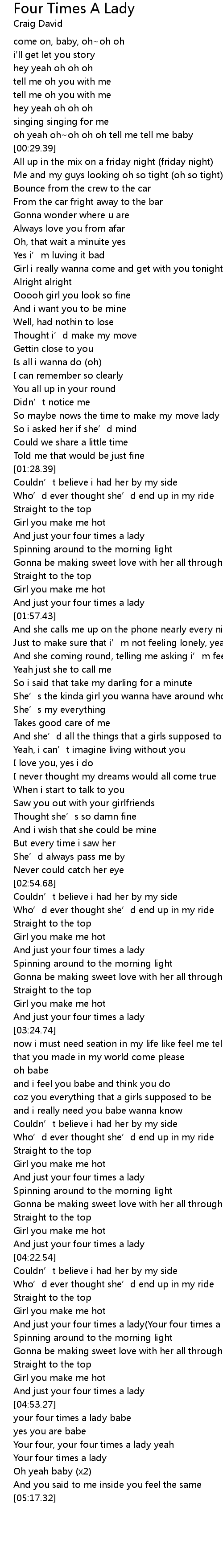 | [05:02.93] | Your four, your four times a lady yeah |