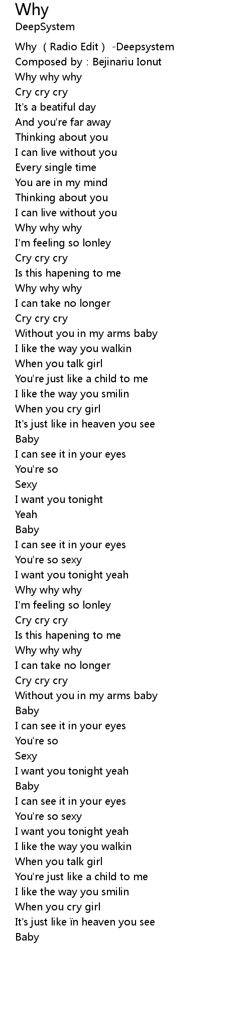 | [00:00.98] | Why (Radio Edit) -Deepsystem |