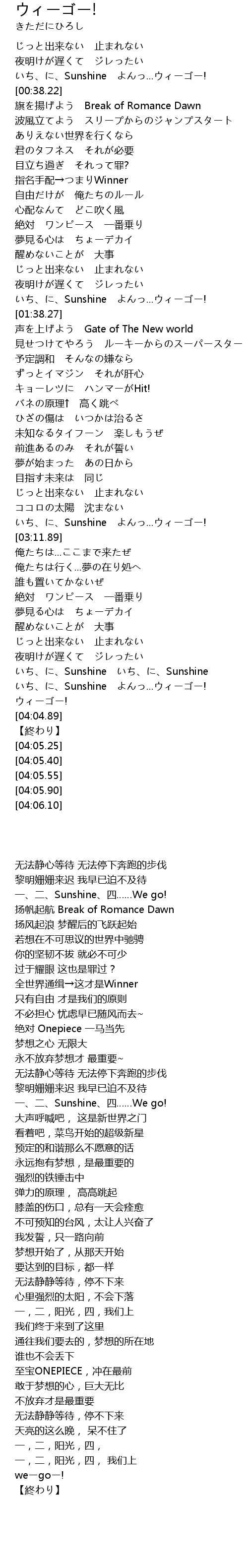 | [01:16.49] | 絶対 ワンピース 一番乗り |