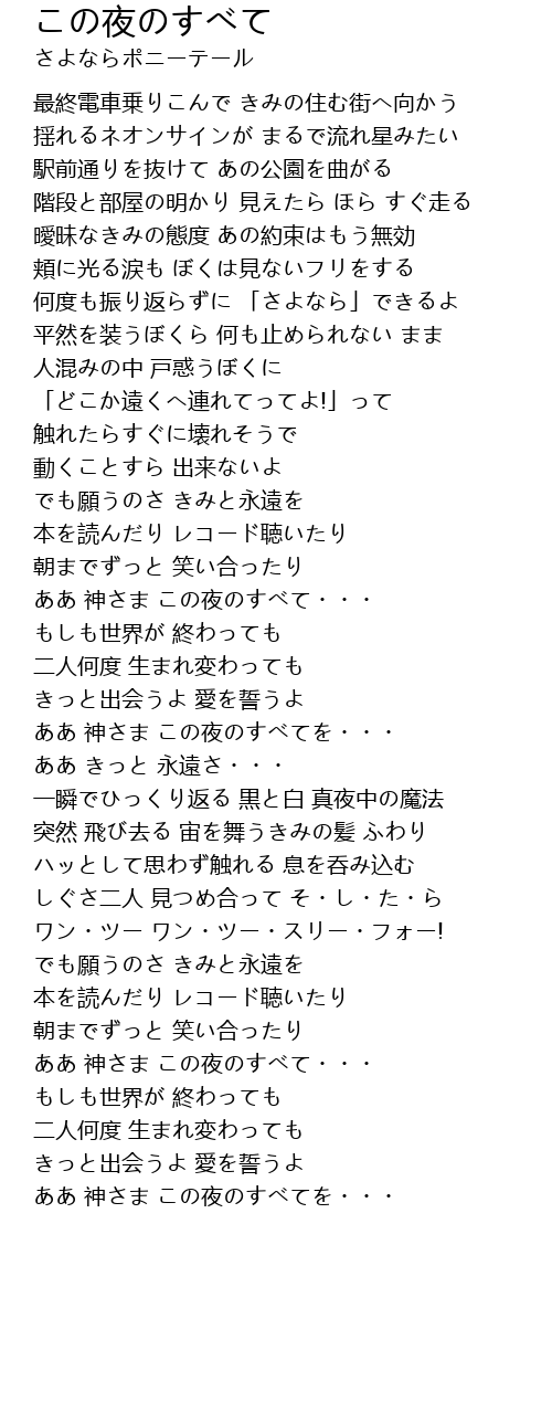 | 最終電車乗りこんで きみの住む街へ向かう | |