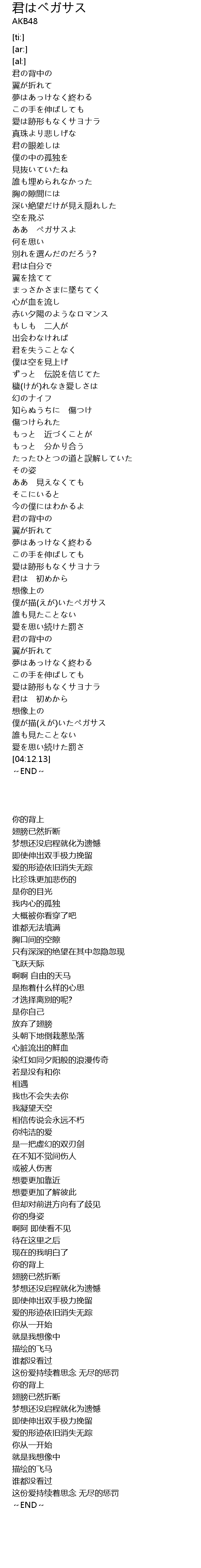 | [04:00.58] | 僕が描(えが)いたペガサス |