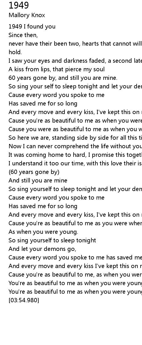 Cause you're as beautiful to me as you were when you were young |