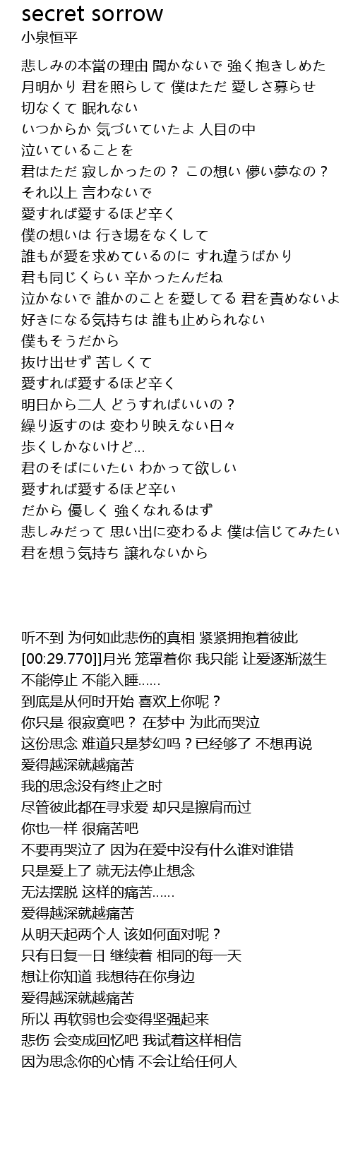 | [02:20.970] | 泣かないで 誰かのことを愛してる 君を責めないよ |