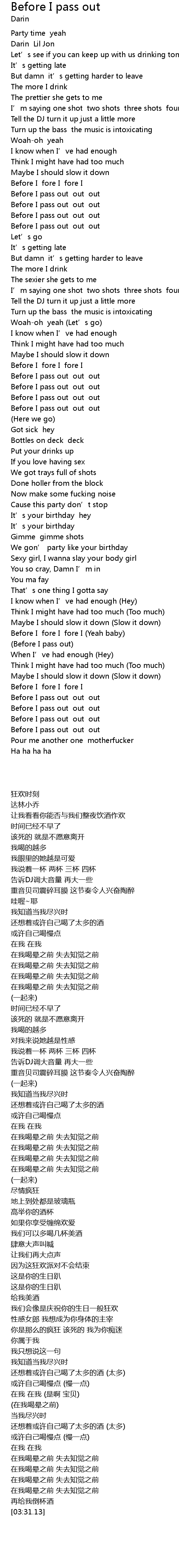 | [03:23.26] | Before I pass out out out |