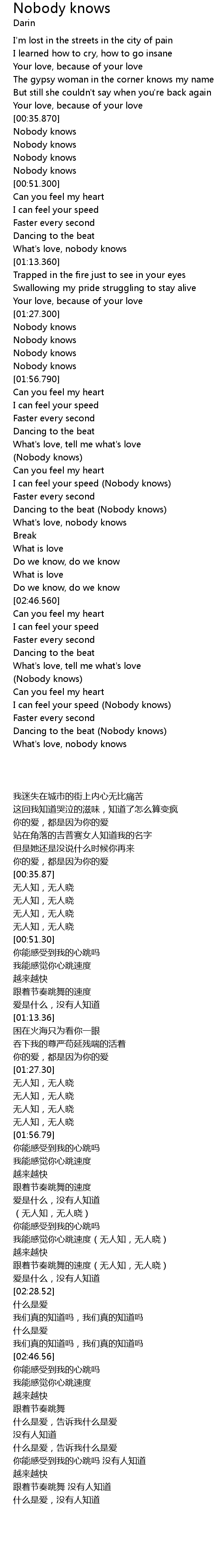 | [03:12.660] | I can feel your speed (Nobody knows) |