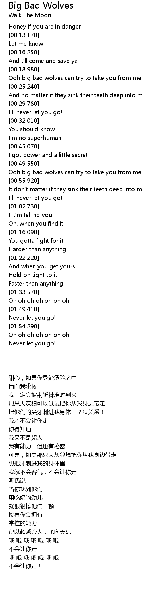 Ooh big bad wolves can try to take you from me |