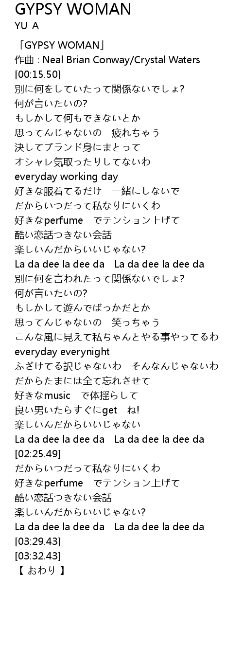 | [00:01.50] | 「GYPSY WOMAN」 |