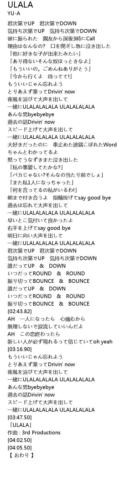 | [03:44.41] | 一緒にULALALALALA ULALALALALA |