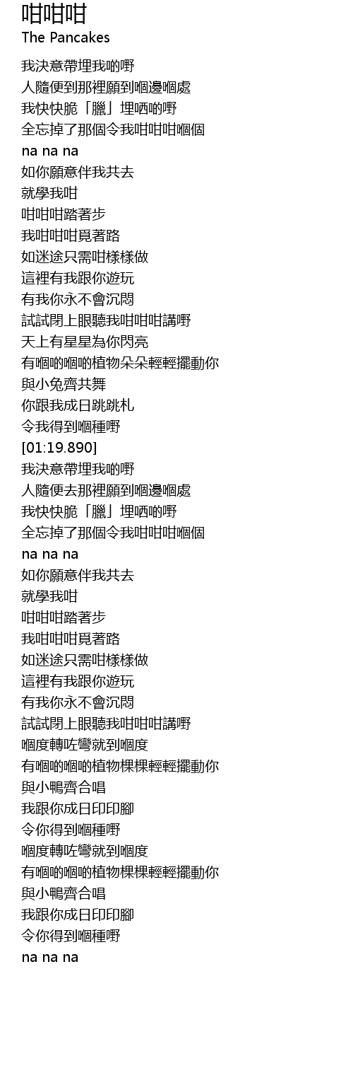 | [01:13.640] | 你跟我成日跳跳札 |