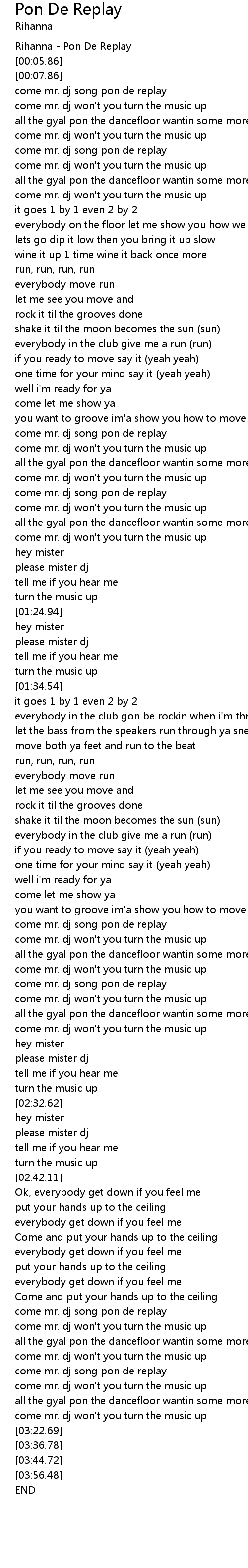 come mr. dj song pon de replay |