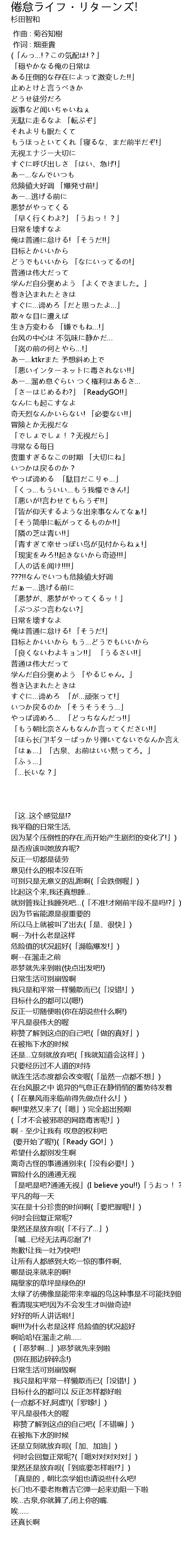 | [00:53.020] | 俺は普通に怠ける! 「そうだ!!」 |