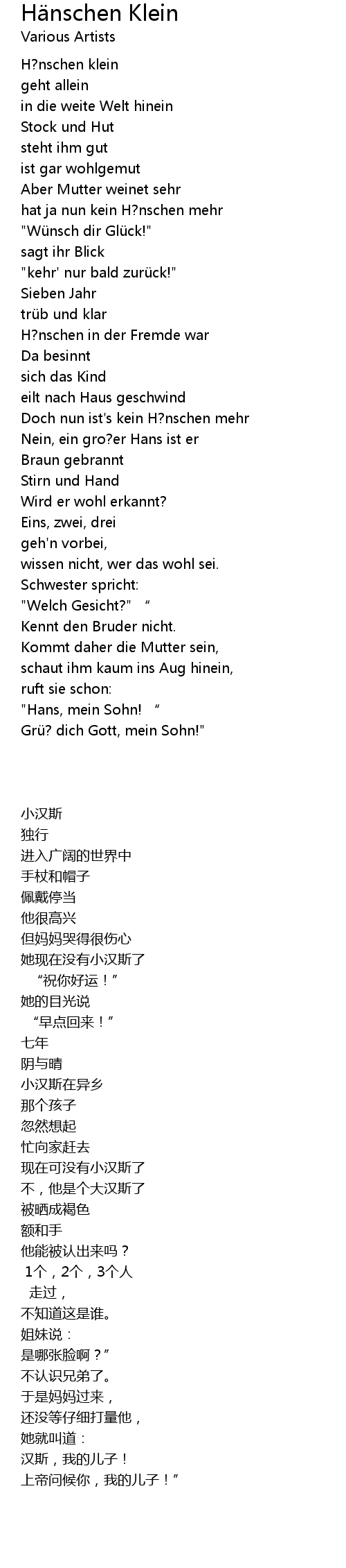 | [00:01.08] | H?nschen klein |