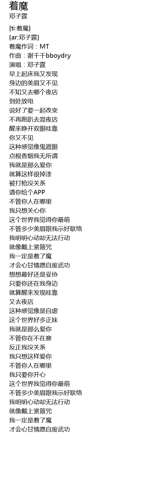 [00:02.482] 着魔作词:MT