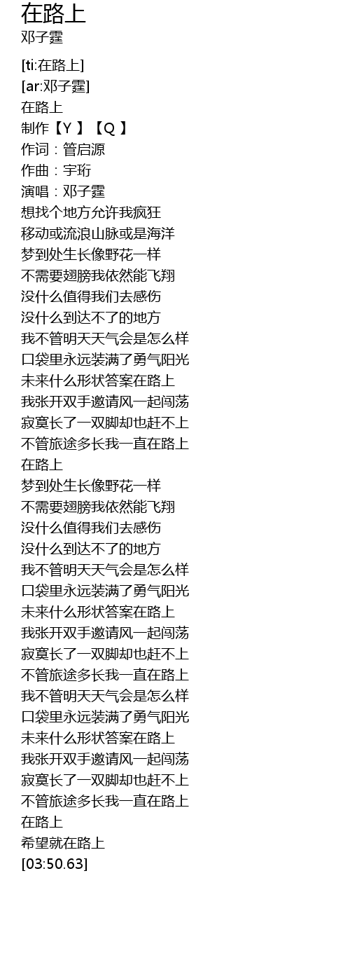 | [03:43.161] | 在路上 |