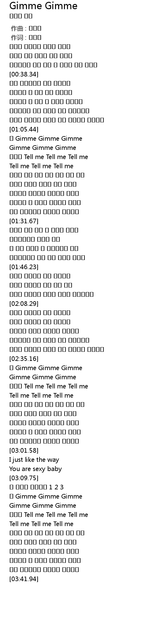 | [02:36.19] | 오 Gimme Gimme Gimme |