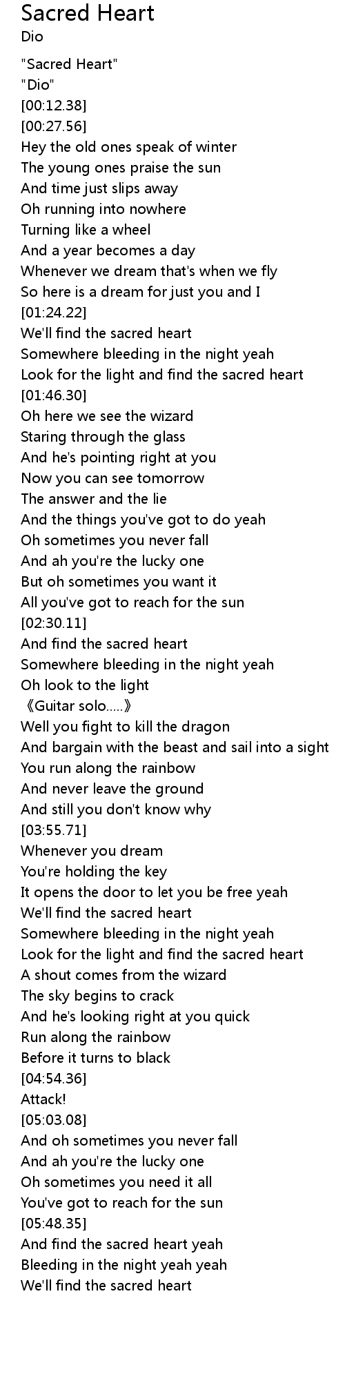 | [00:00.10] | "Sacred Heart" |