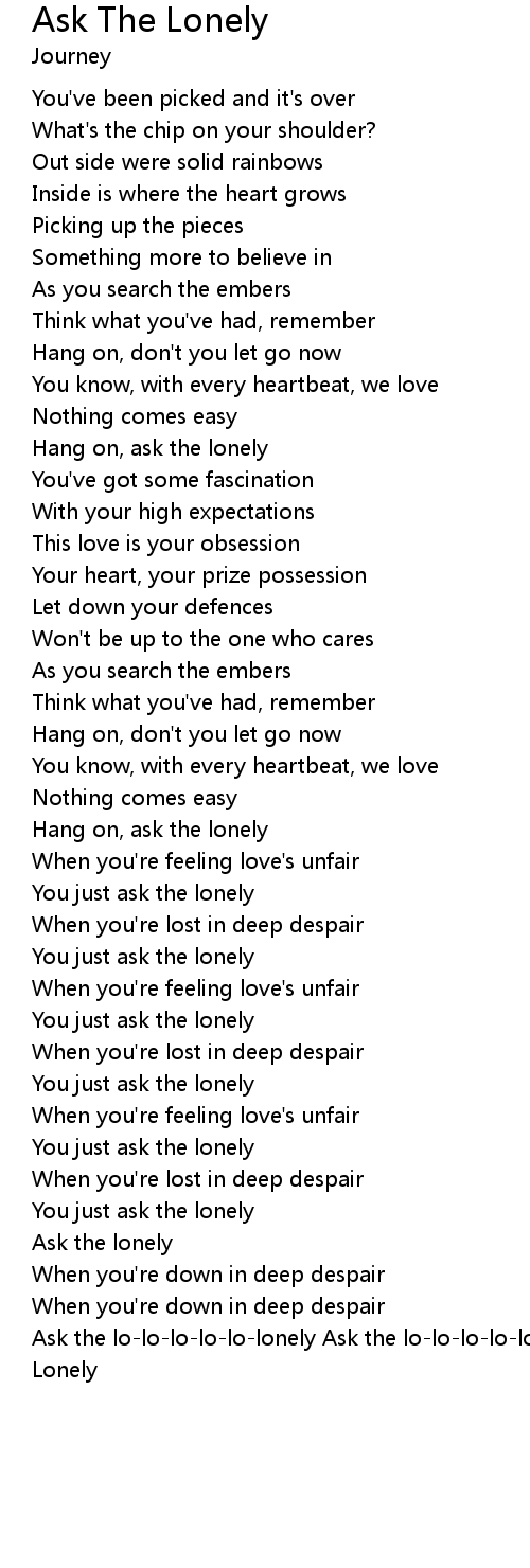 Ask the lo-lo-lo-lo-lo-lonely Ask the lo-lo-lo-lo-lonely |