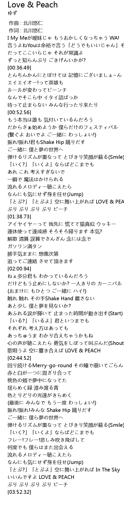 | [03:46.65] | いいんですよ LOVE & PEACH |