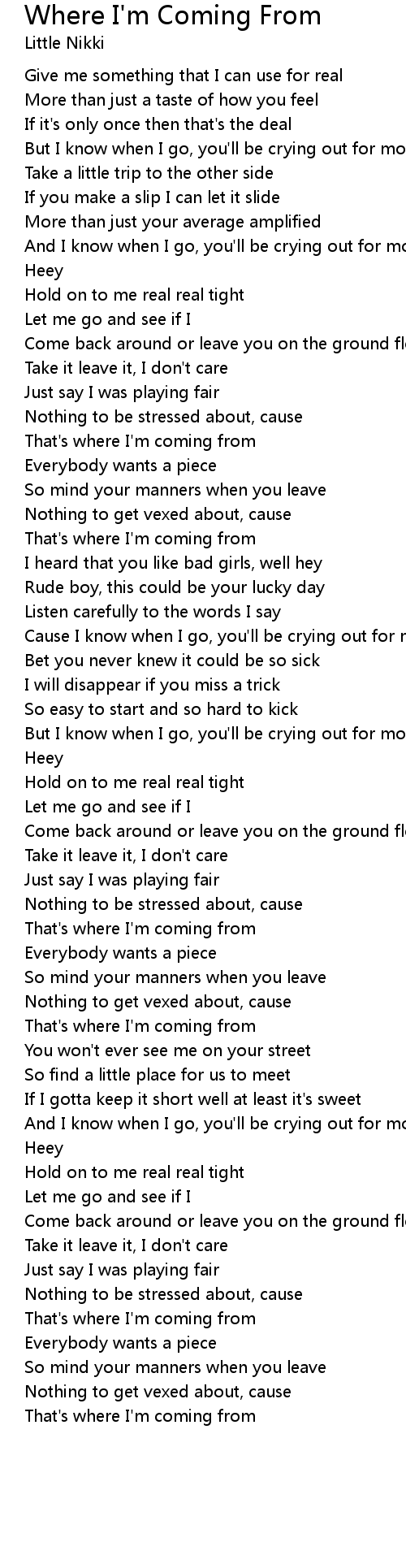 And I know when I go, you'll be crying out for more |