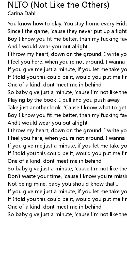 So baby give just a minute, 'cause I'm not like the others, no. |