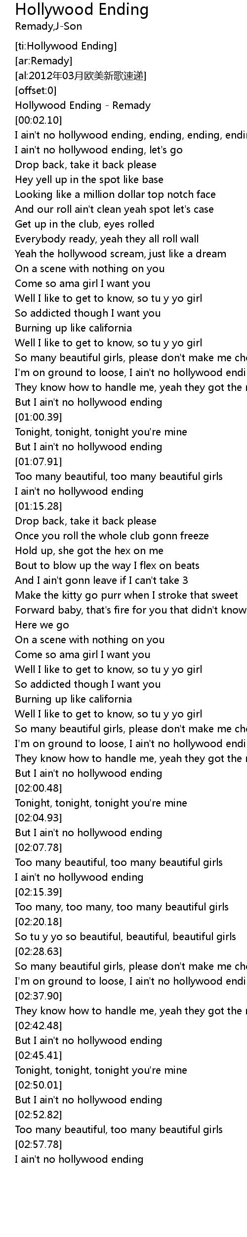 | [00:06.20] | I ain' t no hollywood ending, ending, ending, ending |
