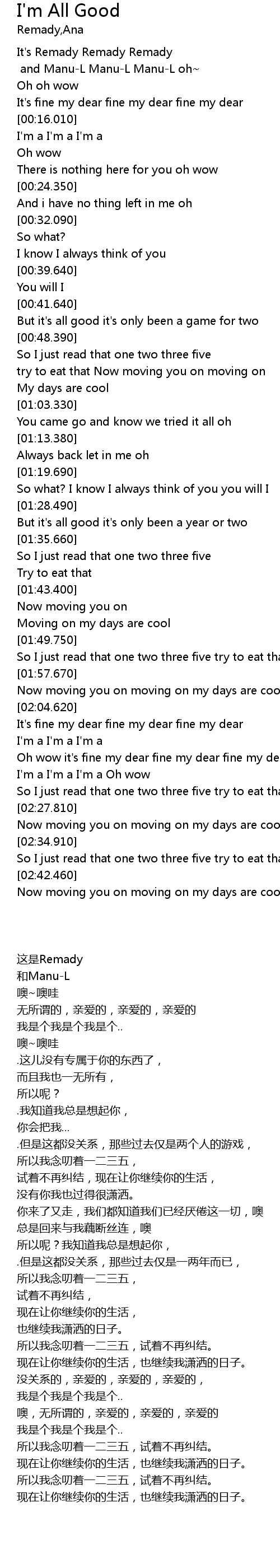 | [00:16.680] | I'm a I'm a I'm a |