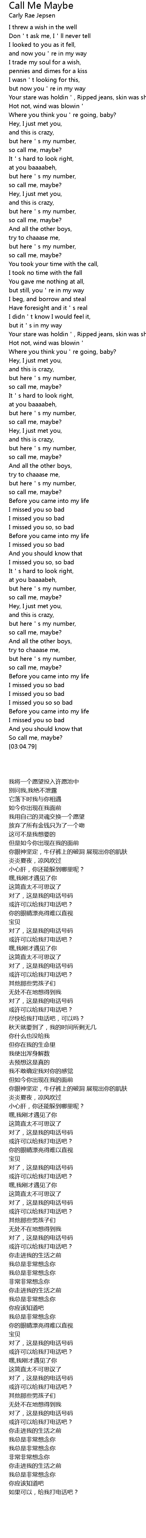 | [03:01.89] | So call me, maybe? |